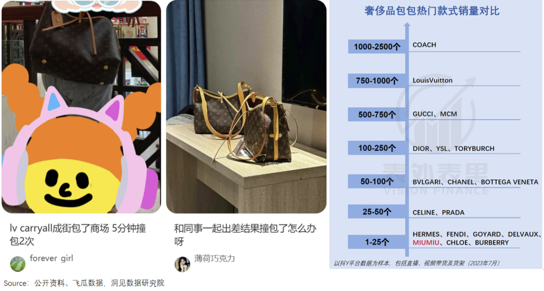 这并非她的错觉,电商平台数据显示,LV、Gucci等一线奢牌最热款式,每月销量遥遥领先,是Fendi、Burberry等品牌的四五十倍。