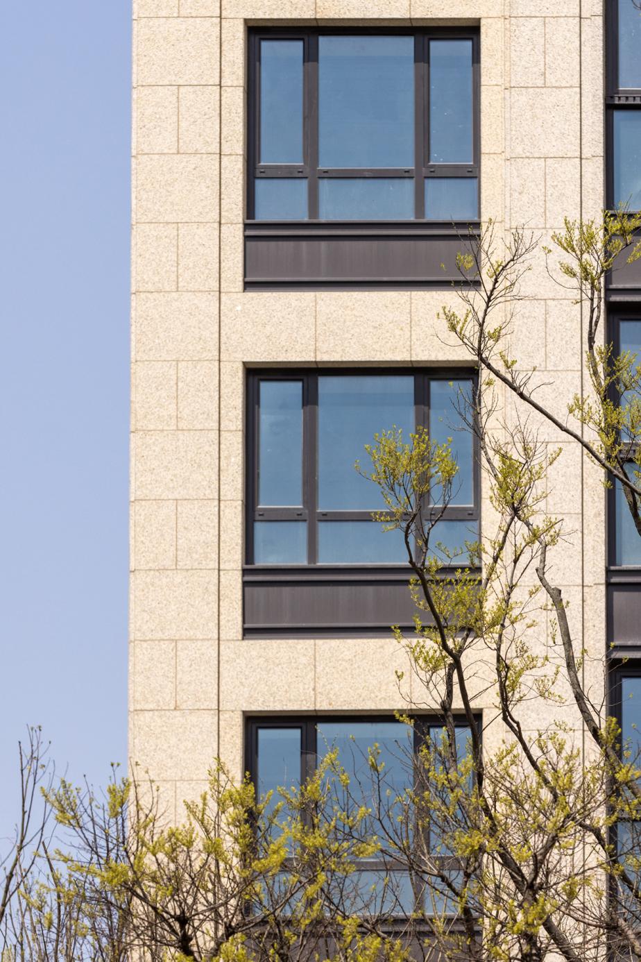 从项目外观看,紫薇之星外立面采用浅色系全石材干挂工艺,巴西都伯斯金麻、宏宇金麻等优质石材经精挑细选与精准拼接,天然纹理相互交织,呈现出细腻而独特的质感。搭配流畅的铝板线条,在不同时段阳光的轻抚下,建筑立面光影灵动变幻,既展现出石材的厚重坚实,又不失现代建筑的轻盈时尚。