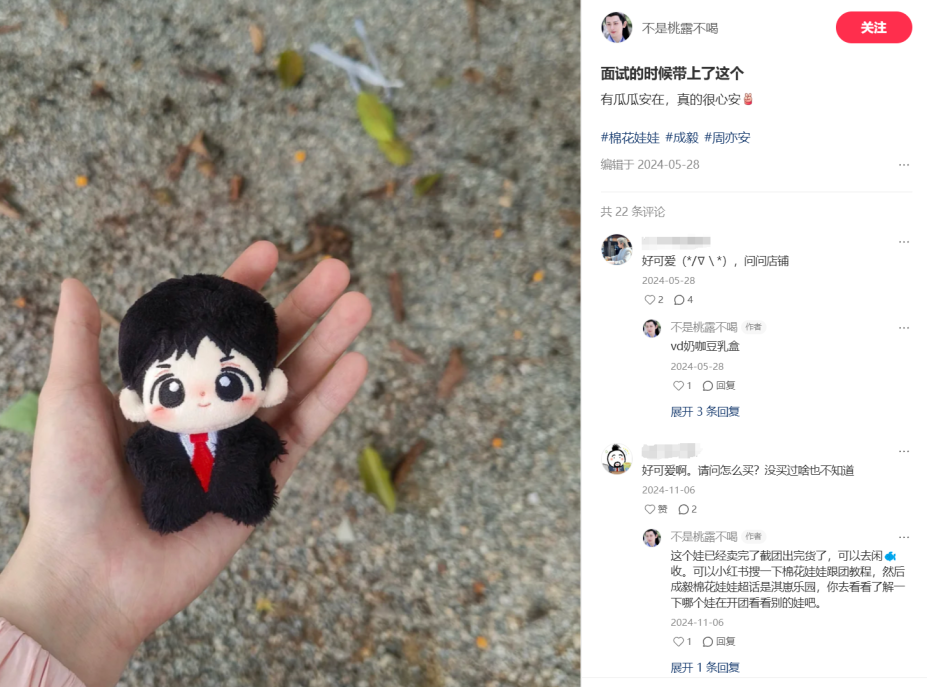 如果这位网友看到现下爆火的棉花娃娃,恐怕会更为震惊:因为,棉花娃娃市场已经连角色都不需要了。剩下的唯一有别于传统毛绒玩具的,只剩「形象」。这些形象可以来自于已有的IP,比如韩团爱豆、游戏角色、二次元人物;但更多时候,它是粉丝对于心目中偶像形象的投射,不必契合现存的任一风格,只是「make their dreams come true」。