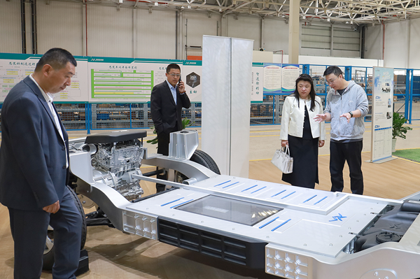 签约仪式前,新吉奥汽车副总经理袁磊陪同张伟伟院长一行参观了台州基地新能源智造中心。通过实地走访生产线、体验在研车型、了解核心技术专利布局,产研院团队全面感受了新吉奥在新能源商用车领域的智造实力——涵盖自动化产线建设、模块化研发体系及全场景产品矩阵的立体化优势,为后续合作奠定了技术信任基础。