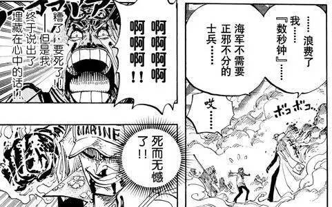 之前就一直在说以后诸如藤虎,青雉,斯摩格,克比这类的海军一定会为海军带来重大的变革。克比在顶上战争中其实也算是一个旁观者吧,到战争接近尾声时,他深刻的意识到口口声声说着正义的海军们正在对生命进行践踏,于是他站出来了,这充满勇气的数秒钟改变了世界的命运。