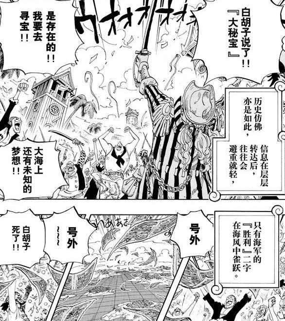 对于一些海贼们来说大秘宝是真的存在的比什么都重要,而对于那些民众们,他们好像不需要知道白胡子海贼团的命运,也并不想要了解这场战斗给某些人带来的痛苦,只需要知道……【正义胜利】就够了!!
