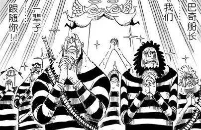 在这里算是分成两波儿人吧,被路飞影响的人,和崇拜巴基的人。(2333..)虽然各有各的目的,但路飞的影响力真的绝了,就像鹰眼说的: 路飞不靠能力和招数就可以让在场的人一个接一个成为自己人。。另外,有因佩尔犯人们的崇拜、追随,巴基在这场战斗中算是收获非常大了。(海贼王人物分析 小杨饭饭)