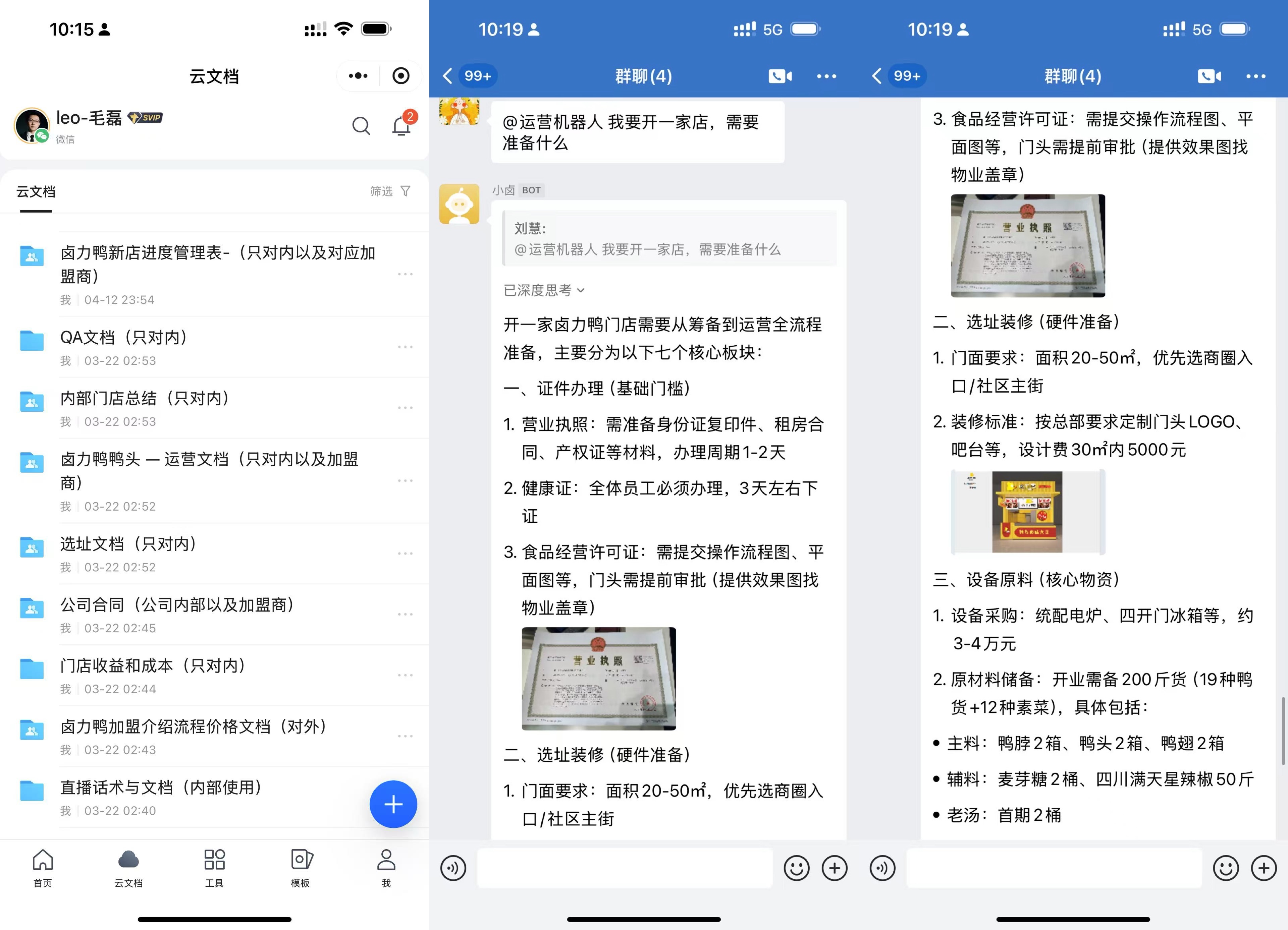 如今他已经积累850多个门店文档,总共更新了26万字的开店经验。AI机器人名叫小卤,搭建到现在将近三个月,毛磊花了大精力、投入了10万元。