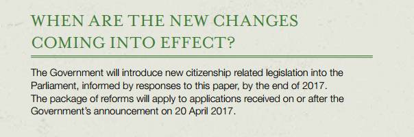 澳洲联邦政府将在17年底之前将入籍新政提案递交到议会,一旦提案被通过,17年4月20日之后的入籍申请都会受到影响。