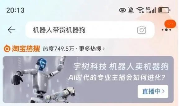 “宇树科技机器人带货机器狗”话题登上淘宝热搜(图源:淘宝)