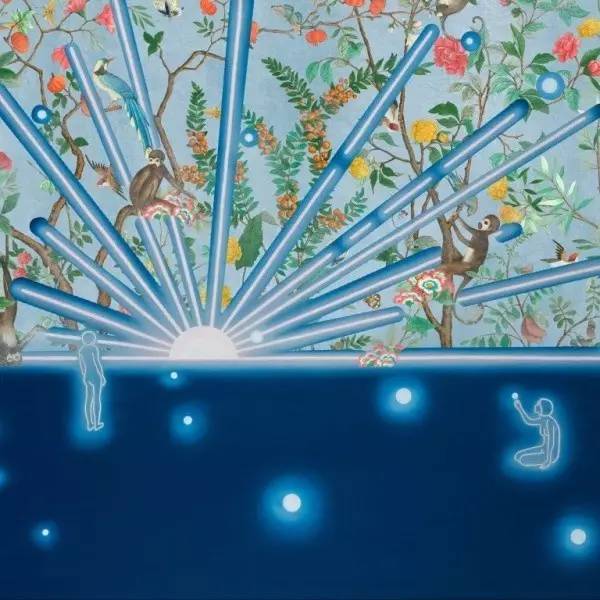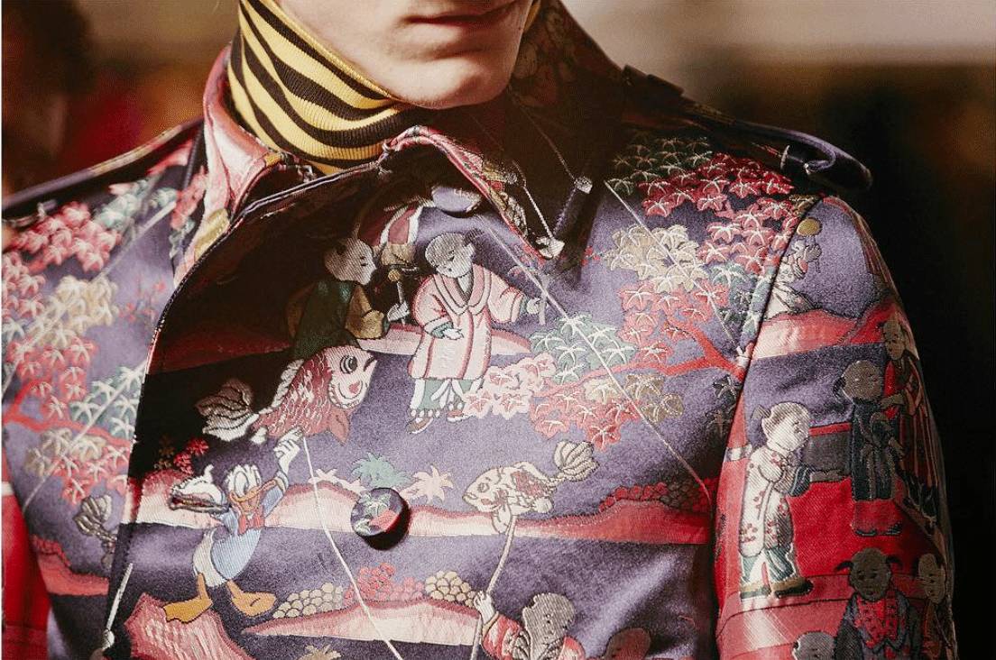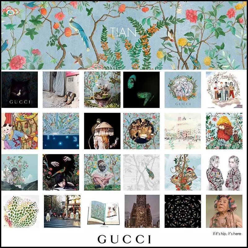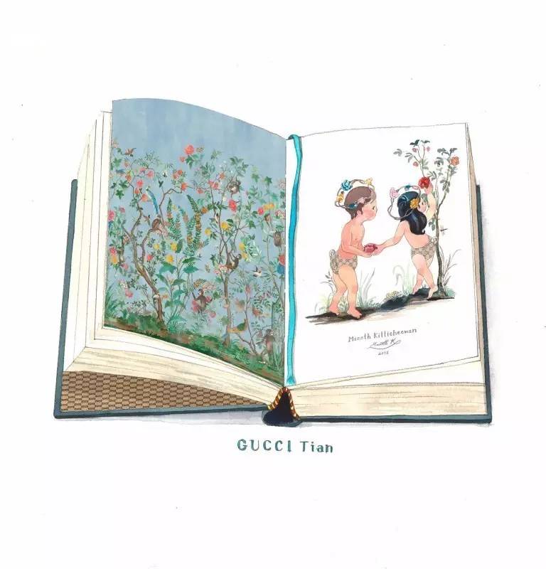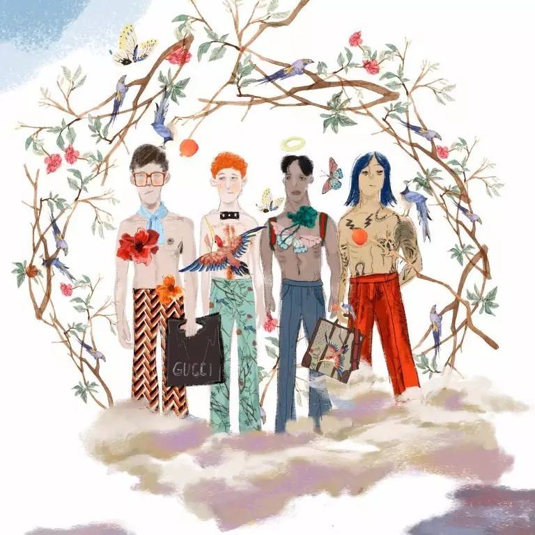 “传说中,凤凰掌管百鸟,知晓天时,可爱讨喜的蜂鸟与青鸟,透过‘天’捎来幸福喜悦的信息,蓝雀为新年带来富贵的寓意,这是Alessandro Michele为GUcci经典印花图腾的新诠释——“天”。