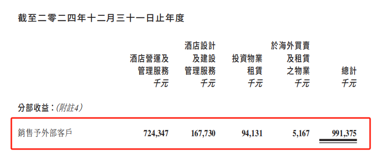 酒店业务包括:酒店营运与管理服务,酒店设计与建设管理服务;物业业务包括:投资物业租赁。