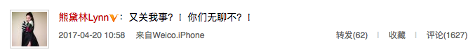 4月20日,熊黛林发文称:“又关我事?你们无聊不?!”疑似指责媒体网友把郭天王近日大婚和自己联系起来,同时也意在澄清大婚当日罢走秀传闻不实。其直率的态度引来一众网友点赞:“做得好!”