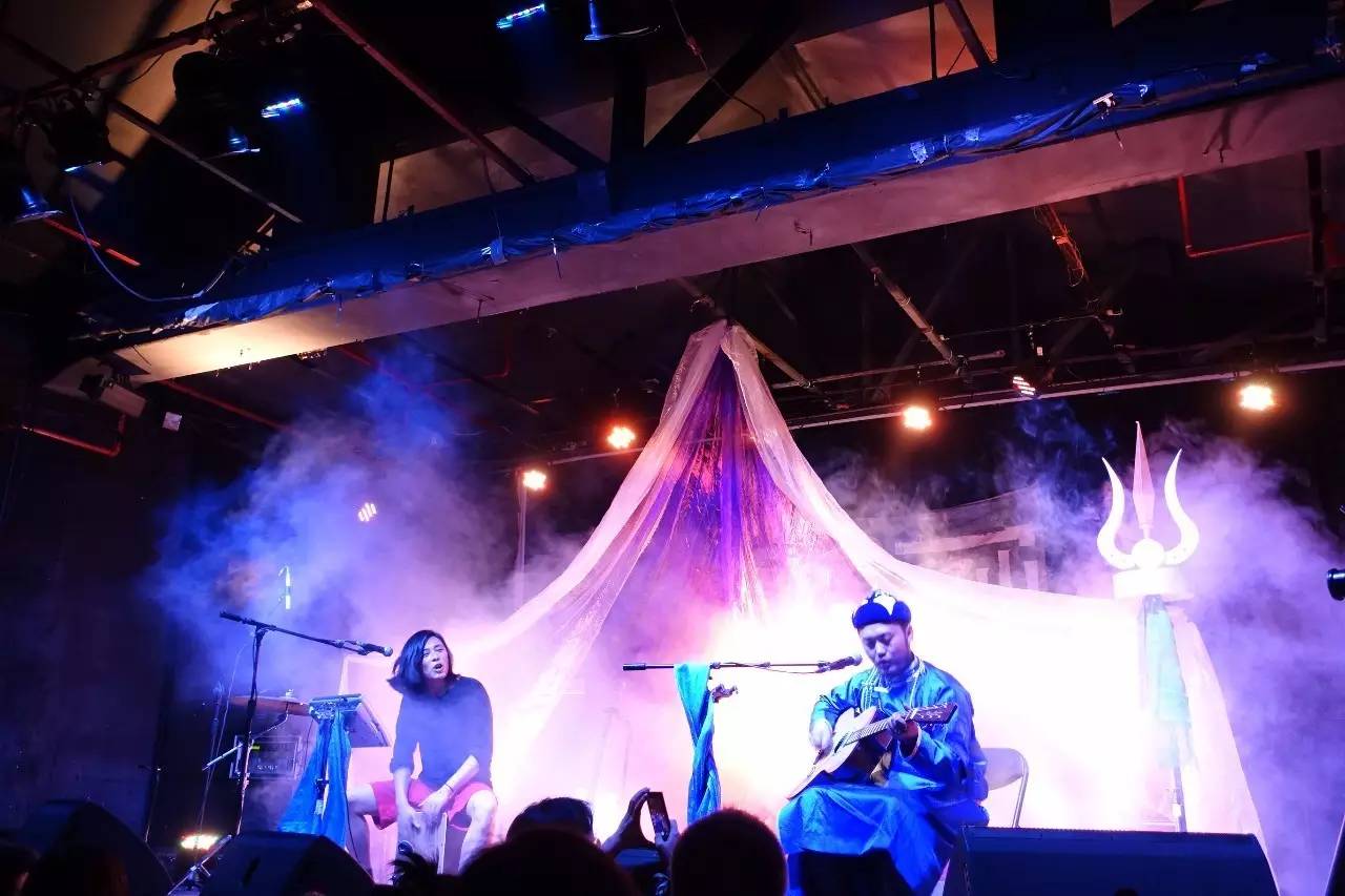 比起一台群像演出,现场更像是一场朋友聚会。蒙古音乐人刚子当天晚上带了三件蒙古袍,被几位音乐人抢来抢去,轮流穿着过瘾;在调音与换场间隙,刚子和宗璨会自然地开始捧哏逗哏,带着大碴子味儿的对口相声时常能博得台下一阵笑声;来参加演出的乐手们也毫不在意地从台下跑跳上台,插科打诨,气氛十分轻松愉快。