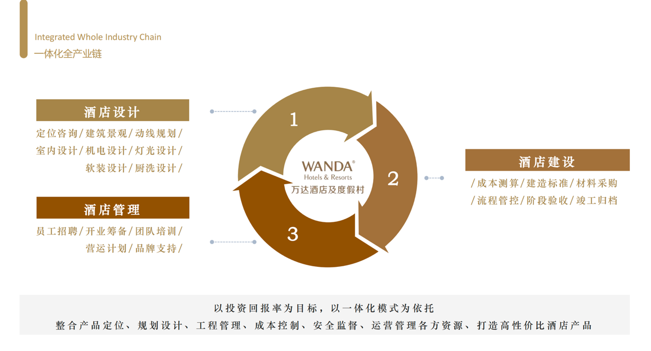 作为在酒店市场深耕数十年的“行业老炮”,万达酒管团队深知酒店开发过程中的痛点和堵点。当设计、施工、采购等环节出现的相互推诿,甚至从中渔利等情况,不仅会拖累酒店开业进度,也会拉长业主的投资回报周期。2017年,万达将万达酒店设计研究院、酒店建设公司与酒店管理公司正式合并,整合产品定位、规划设计、工程管理、成本控制、安全监督、运营管理各方资源,形成一体化模式。