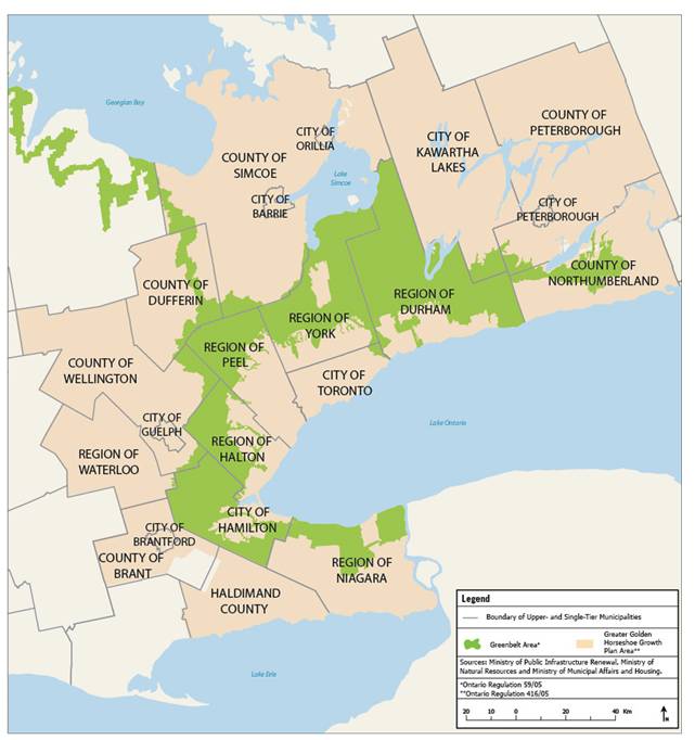 行政范围则包括:Brant, Dufferin, Durham, Haldimand, Halton, Hamilton, Kawartha Lakes, Niagara, Northumberland, Peel, Peterborough, Simcoe, Toronto, Waterloo, Wellington 以及York。