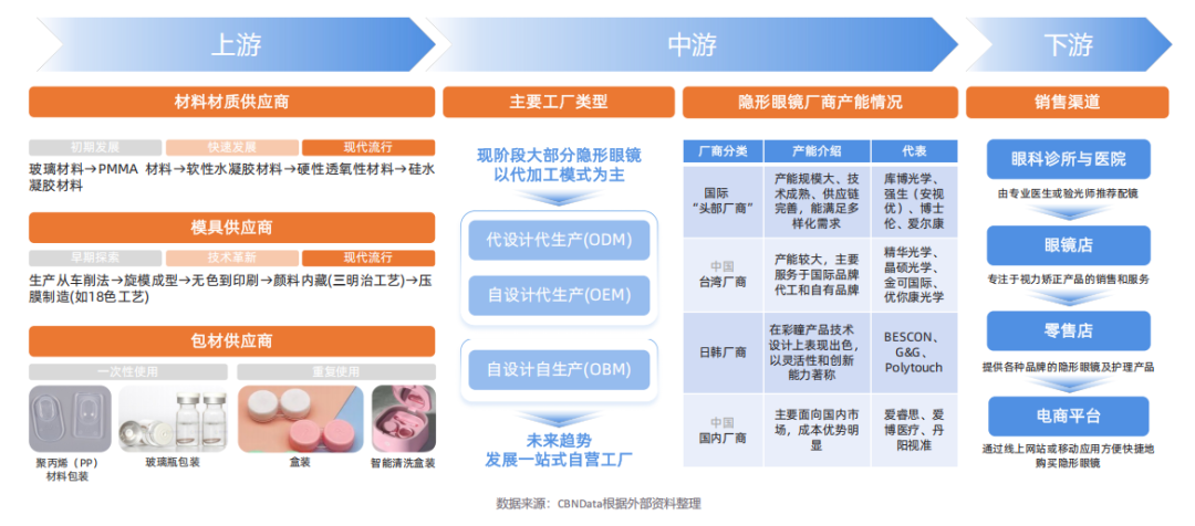 行业格局的明确、新需求的浮现,本质上驱动着产业链价值重构,眼下行业升级面临三重关键突破点:在上游材料领域,以硅水凝胶、模压工艺制造与智能护镜为主要方向。中游环节,代加工起步的企业正通过研发投入加速创新,向品牌化转型。