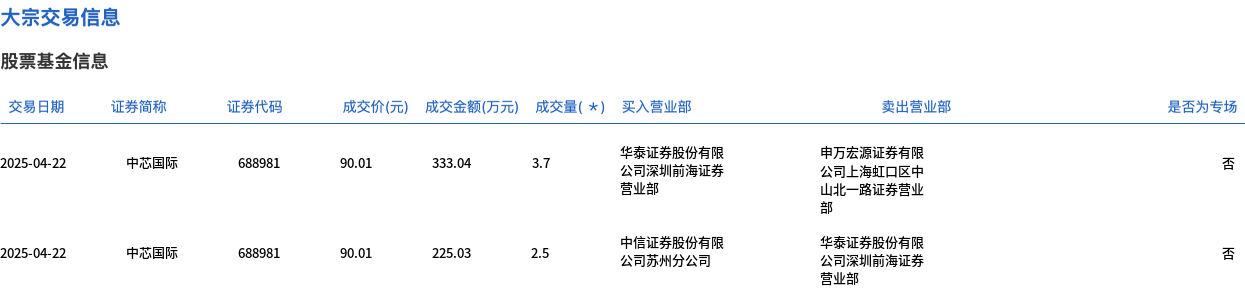 中芯国际今日大宗交易平价成交6.2万股,成交额558.07万元
