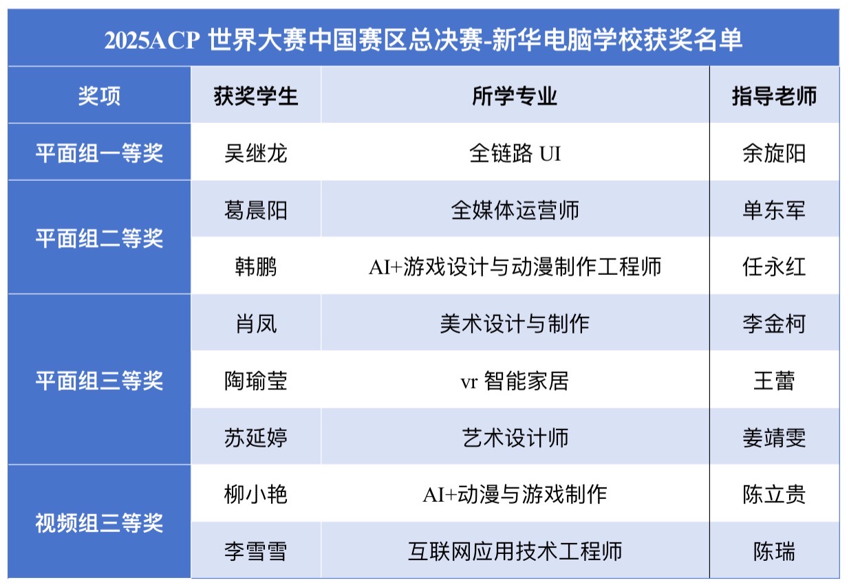 在职业教育蓬勃发展的当下,新华电脑教育成果斐然,学子们以实践为师,凭借扎实的专业功底和独特的创新思维,从一万多名参赛选手中脱颖而出,