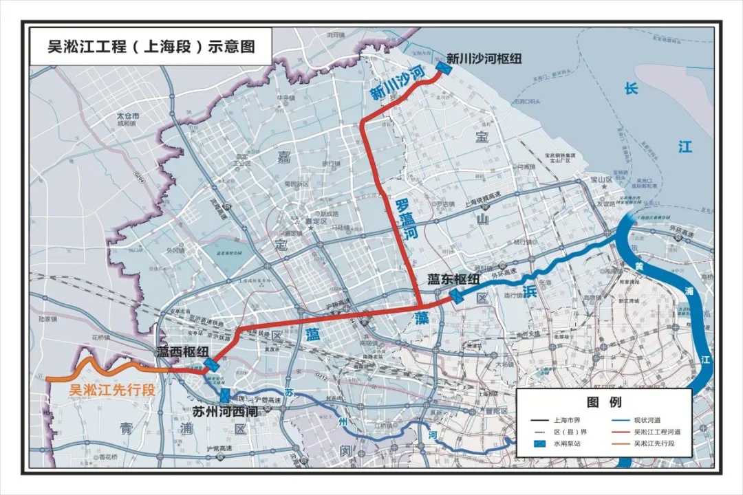 根据项目总体安排,吴淞江工程(上海段)分阶段实施,其中新川沙河段、苏州河西闸、新川沙河-练祁河3个项目按水利项目立项,分别于2020年、2022年、2023年开工建设。