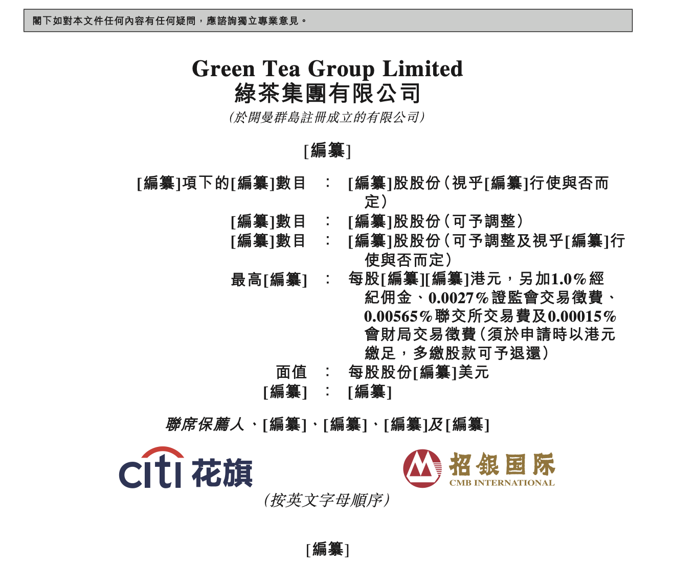 据港交所文件,绿茶集团有限公司通过港交所上市聆讯,联席保荐人为花旗及招银国际。