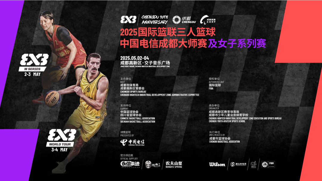 2025年是成都与国际篮联携手的十周年。自2016年国际篮联成都3×3挑战赛首次落户成都,三人篮球国际大赛纷至沓来,成都已经成为欧洲之外第一个与FIBA3×3达成10年合作之约的城市,也是唯一一个举办过4种不同FIBA3×3赛事的亚洲城市。