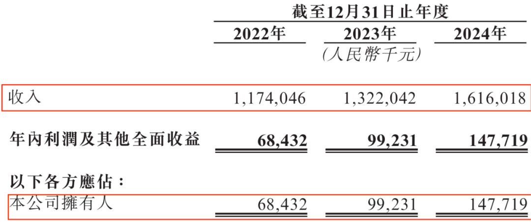 如今,溜溜果园终于将业绩重新拉回增长轨道。招股书显示,2022年至2024年(以下简称:报告期),公司实现收入11.74亿元、13.22亿元、16.16亿元,公司拥有人应占利润6843.2万元、9923.1万元、1.48亿元。