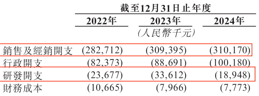 招股书显示,于2024年末,溜溜果园只有26名研发专业人员。2022年至2024年,其研发开支分别为2367.7万元、3361.2万元、1894.8万元,不到销售及经销开支的1/9。