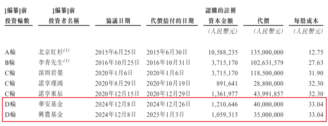 赎回红杉所持股份1个月后,溜溜果园又快速引入两位投资者。2024年12月,华安基金、兴农基金两位D轮投资方以33.04元/股的价格入股,但溜溜果园合计仅拿到了7500万元的融资款。