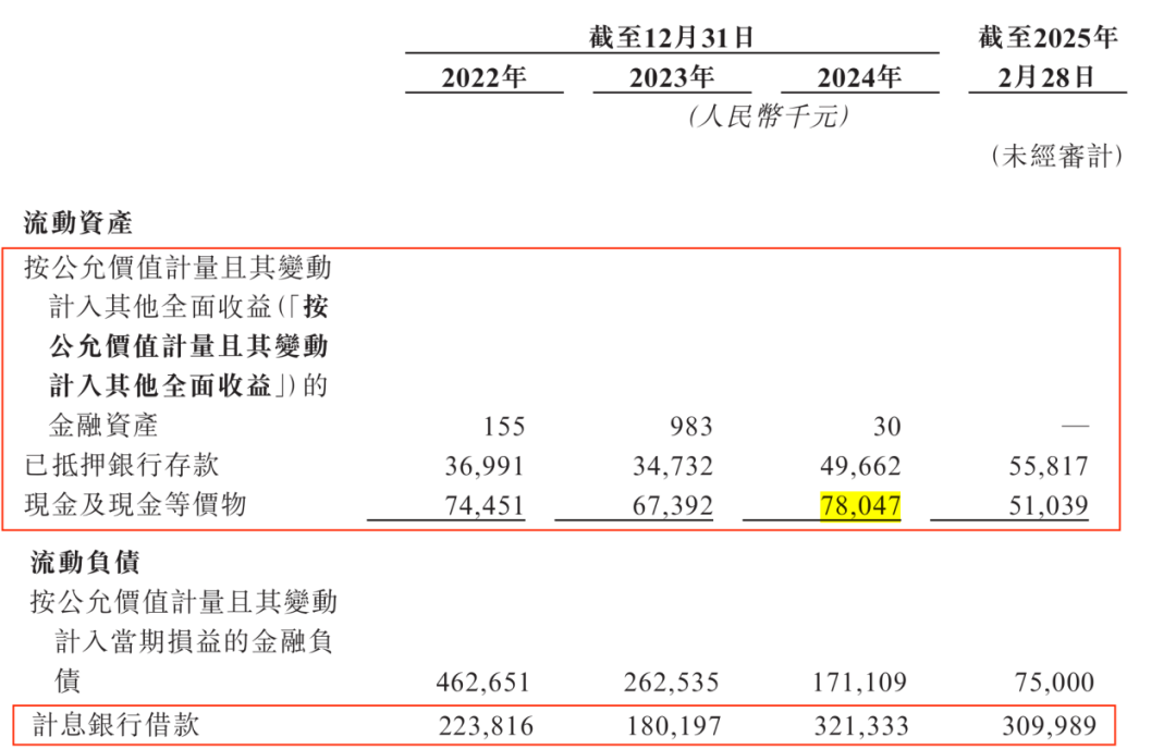 截至2025年2月28日,公司的现金及现金等价物为5104万元,而短期银行借款高达3.10亿元,即便加上已抵押银行存款5582万元,公司仍存在超2亿元的短期资金缺口。