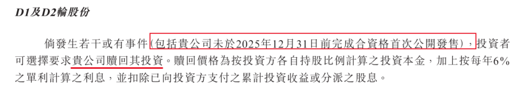 只是,资本一向逐利。突击入股溜溜果园的D轮投资方要求十分明确:倘若未在2025年12月31日前完成合资格首次公开发售(IPO),可选择要求公司赎回其投资,而赎回价格是投资本金叠加每年6%的利息。