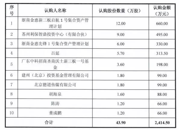 此外,在去年6月,自在传媒还曾完成过一轮定增,募集资金2414.5万元。此次发行可谓星光闪耀,明星股东胡海泉、陈羽凡(原名陈涛)、“屌丝男士”董成鹏(大鹏)等都赫然在列。