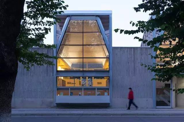 这座社区图书馆不仅颜值高,还处处流露出人性化。外面的玻璃窗下安装了两个长椅和檐篷供行人短暂的休憩,玻璃橱窗里摆放了近期新书,鼓励当地市民关注图书。