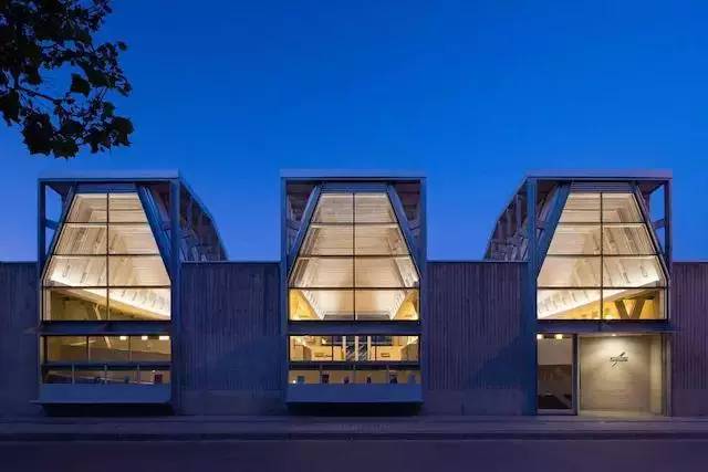 方盒子形状的建筑是用整齐排列的木条搭建的,留有缝隙以漏过阳光流通空气,而临街的一面则铺上了玻璃窗,使得自然光线可以深入到图书馆的内部。