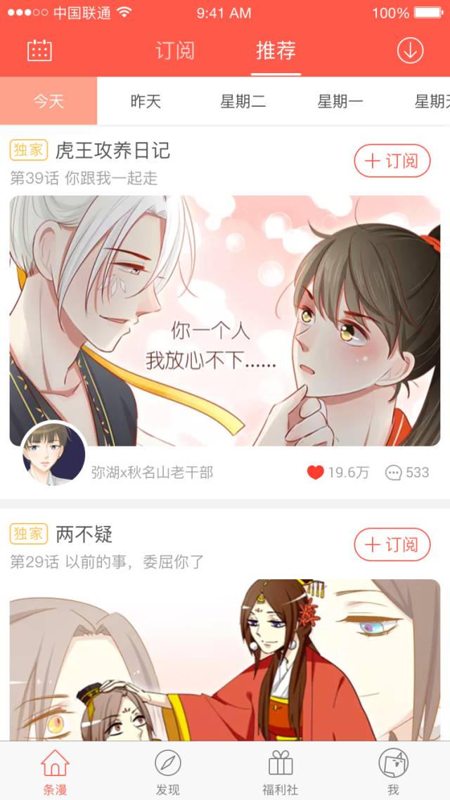 现在漫漫漫画上的连载作品全部都为条漫,首页也并不是以作品集合的形式展现,而是以时间轴更新订阅作品。王玲表示这种设计也是为了迎合碎片阅读的需求。