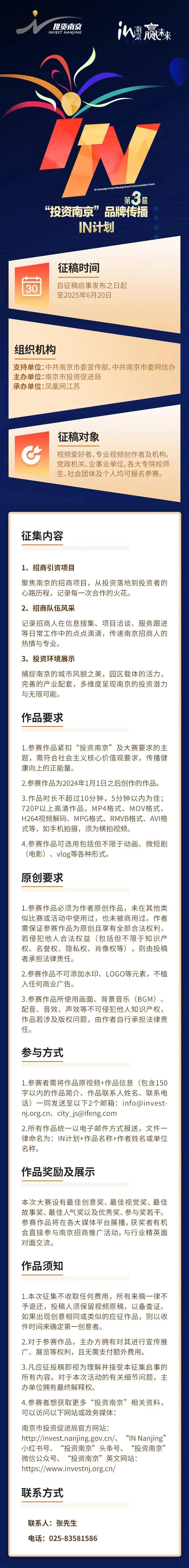 “投资南京”品牌传播 IN 计划已经成功举办两届。第一届活动全网阅读量近千万次,共征集到logo、海报、视频、摄影等作品200多件,荣获江苏省对外宣传工作创新奖。