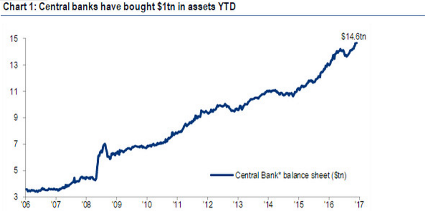 不过美银美林分析师近日表示,欧洲央行和日本央行仍然在大举买入金融资产,而他们的这一举动将决定股市和债市在2017年的表现。