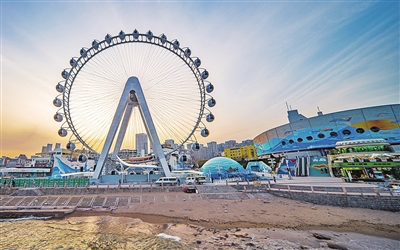 极地摩天轮项目东临石老人海水浴场、西连小麦岛,将于4月25日正式投入使用,成为青岛滨海旅游版图上崛起的新地标。极地摩天轮总高度约66米,轮转直径达60米,共配备30个轿厢,其中15个为深受青年与亲子家庭客群喜爱的主题轿厢,每个轿厢可容纳8至10人。