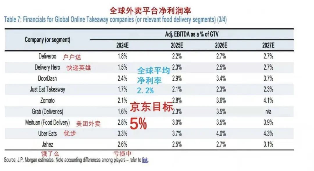 摩根大通对外卖平台净利润率的测算