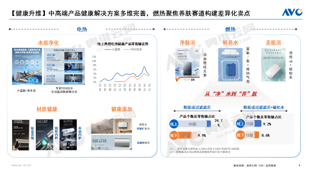 在细分赛道领域,头部品牌聚焦肌肤健康领域,推出具有差异化卖点的产品。从一季度新品情况来看,燃热产品将健康概念从以往单纯的“净水”层面,提升至“养肤”高度,为消费者提供更贴合实际需求的产品功能。此外,产品体验的优化倒逼热水器行业加快智能升级步伐。如今,热水器智能技术正朝着场景化服务、主动感知方向迈进,能够依据用户行为自主提供服务,实现了产品使用体验的全方位提升。