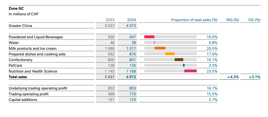 今年初,雀巢发布2024年业绩。雀巢大中华大区去年有机增长率为2.1%,销售额约50亿瑞士法郎,折合人民币408.69亿元,在加入雀巢健康科学和雀巢奈斯派索(Nespresso)这两大块由总部“直管”的业务后折合人民币约445亿元。