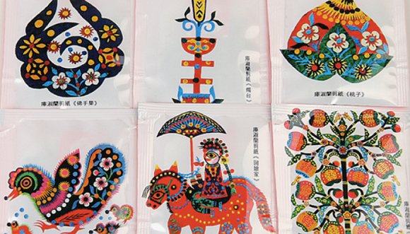 这是文创品牌汉声所出品的老佛手袋泡。外包装上的画特别像农民画或者布堆画,浓浓的中国味洋溢其间。这款茶内外包装都非常讲究细节,内里的袋泡印有6组图案,元素都来自汉声出品的、库淑兰剪纸作品中的吉祥图案,简直让人不忍拆包装。