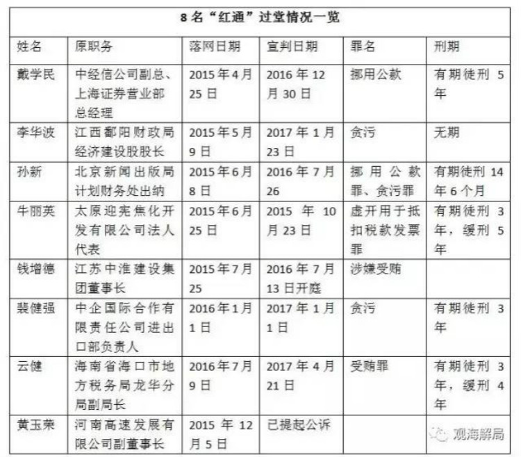 梳理已经宣判的红通人员可以发现,刑期最长的是李华波,为无期徒刑。另有3人获刑3年,其中两人还被判适用缓刑——牛丽英,有期徒刑3年,缓刑5年;云健,有期徒刑3年,缓刑4年。