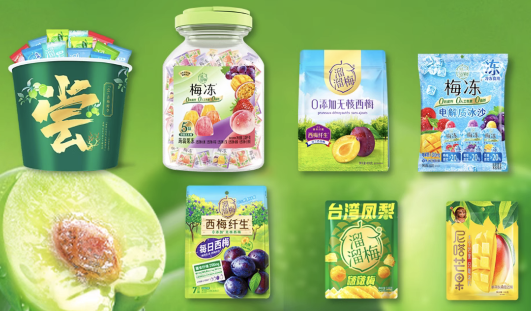 此后,溜溜梅围绕 “健康化”“功能化 ”“场景化”持续深耕产品矩阵。如今已基本形成涵盖梅干零食、西梅产品、梅冻以及梅精软糖、梅茶茶汤等在内的四大类别。