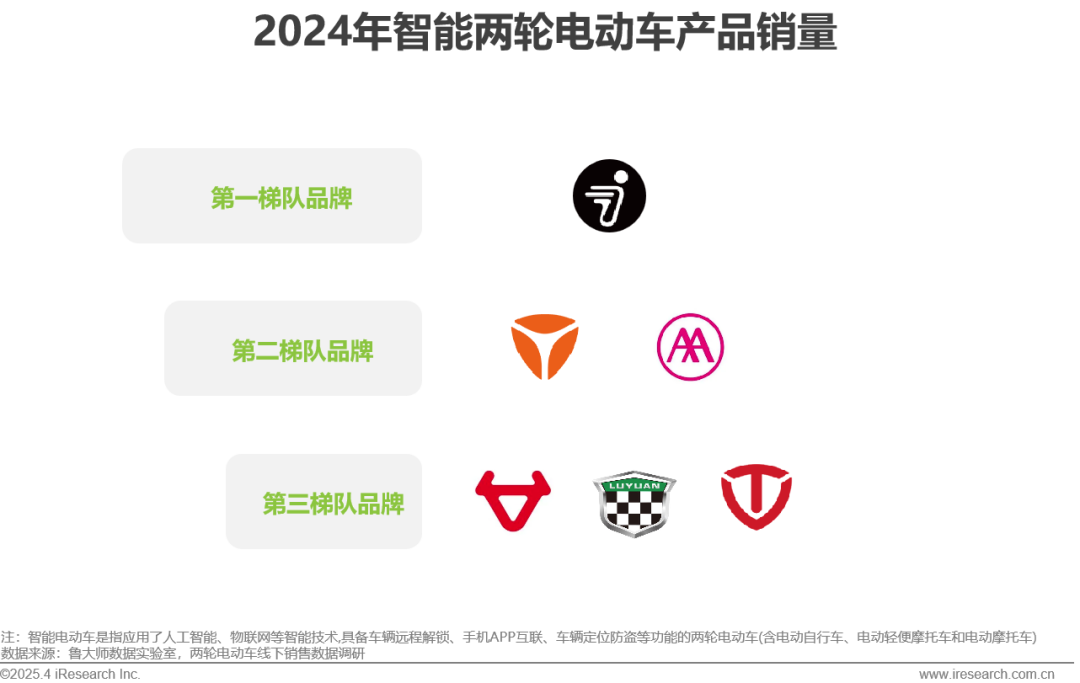 智能化赛道:九号凭借全系智能化功能(如远程解锁、APP互联等)稳居智能电动车销量榜首,雅迪、爱玛紧随其后,小牛、绿源等品牌位列第三梯队。