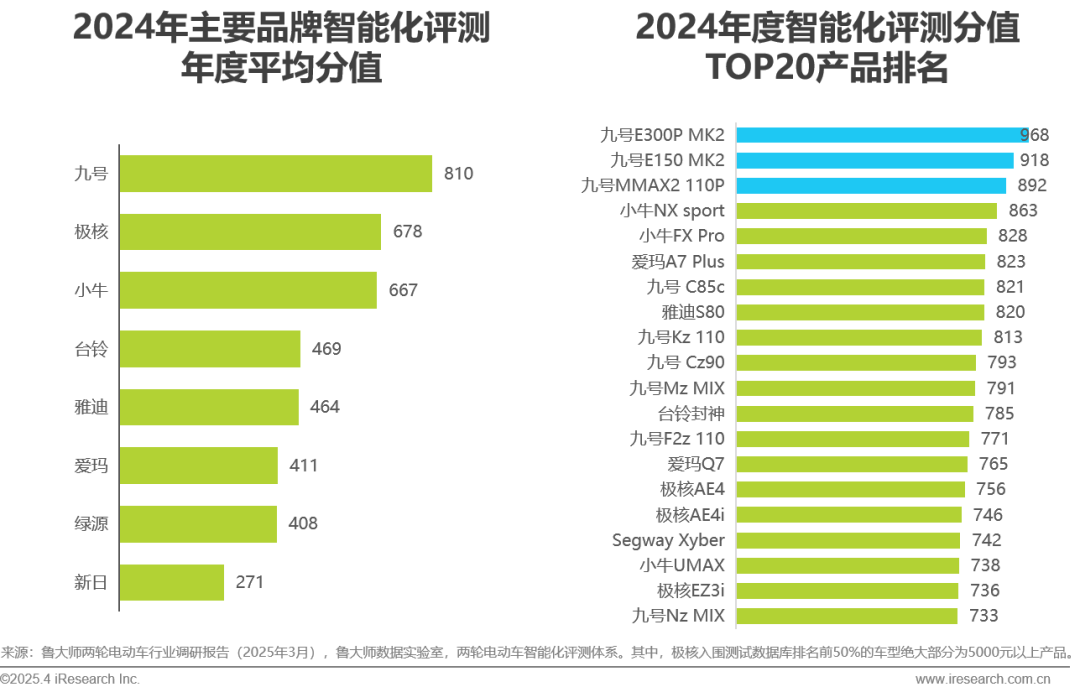 九号领跑智能化评分体系,多款产品入围高分梯队