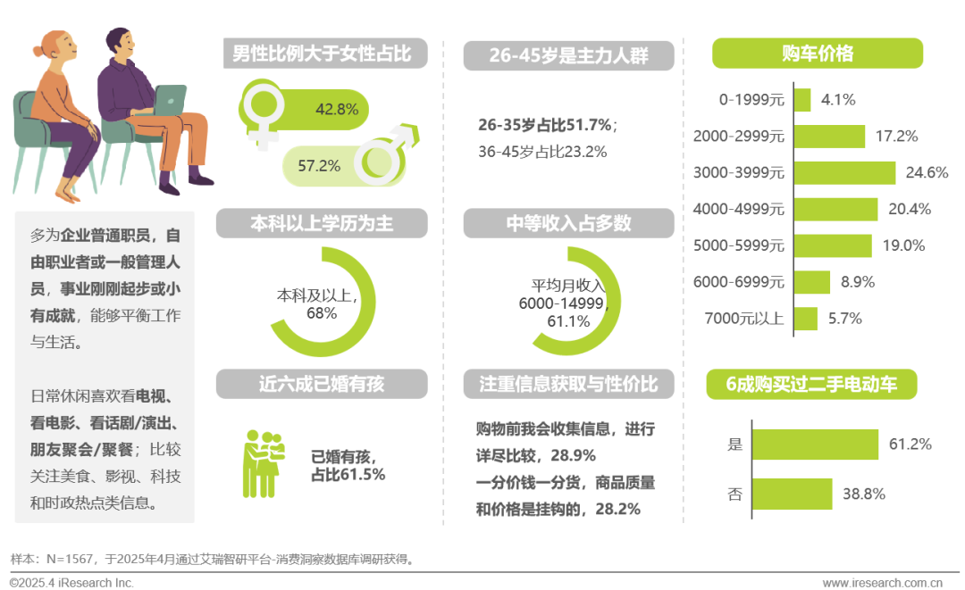 超六成用户有过二手车购车经历,电池寿命与品牌可信度是核心关注