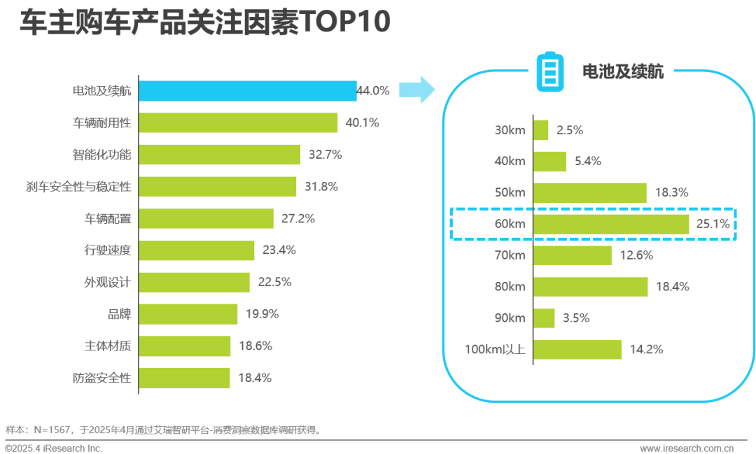 电池续航与车辆耐用性成购车首要考量,智能化功能关注度持续提升