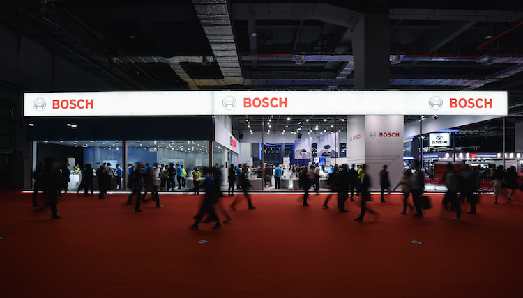 国家会展中心5.1号馆,大众、奥迪、马自达等汽车制造商的展台占据了场馆的多数位置,与他们同时出现在这儿的,还有来自德国的全球最大汽车零部件供应商——博世。