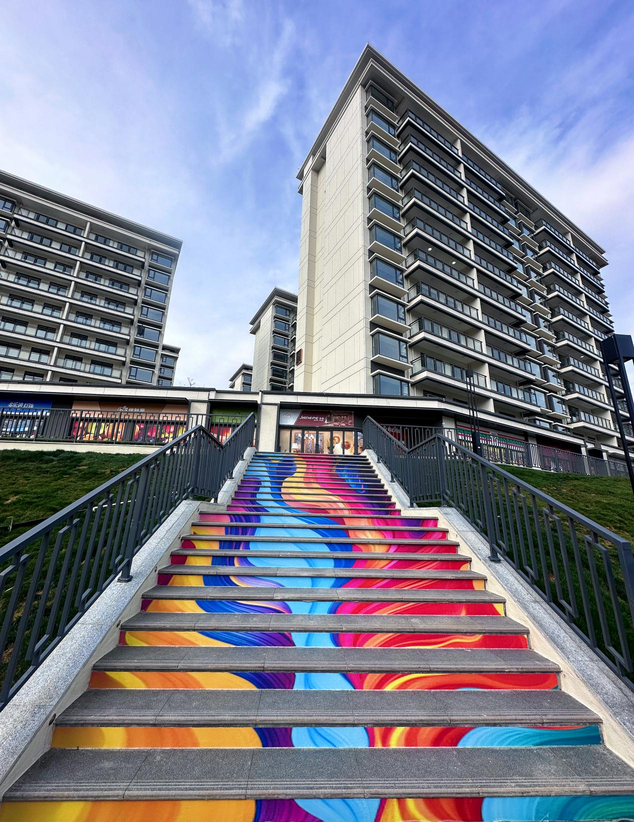 除了住宅与园区的品质,锦悦荟商业街区的焕新,也不仅是物理空间的改造,更折射出新希望·公元锦悦对社区商业价值的深度挖掘。新增的彩虹阶梯、网红打卡墙等互动装置,将日常消费场景转化为社交体验空间,契合年轻客群对“打卡经济”的偏好。