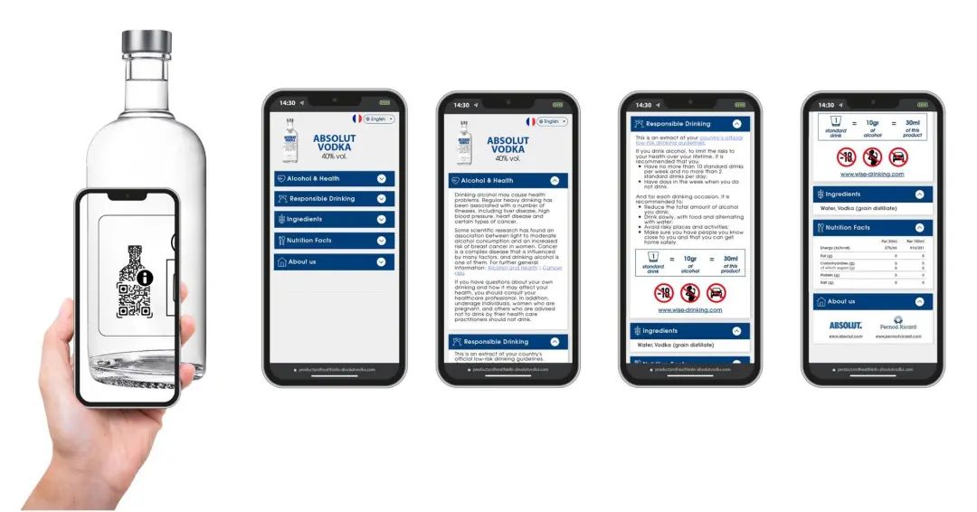 2022年,保乐力加、亿滋国际等企业在欧洲市场采用二维码标签,为消费者提供数字证书、供应链信息、产品相关信息。75% 的用户认为包装二维码信息符合自身预期;90%的人表示这些信息有助于合理消费食物及回收[9]。