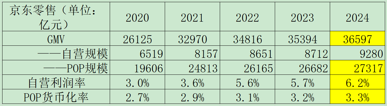 同时,其GMV也没有取得明显增长,按照其各业务的增长相关性推测,其2024年GMV应该会在3.6万亿元的规模,相较2023年的3.5万亿元增长还非常有限。