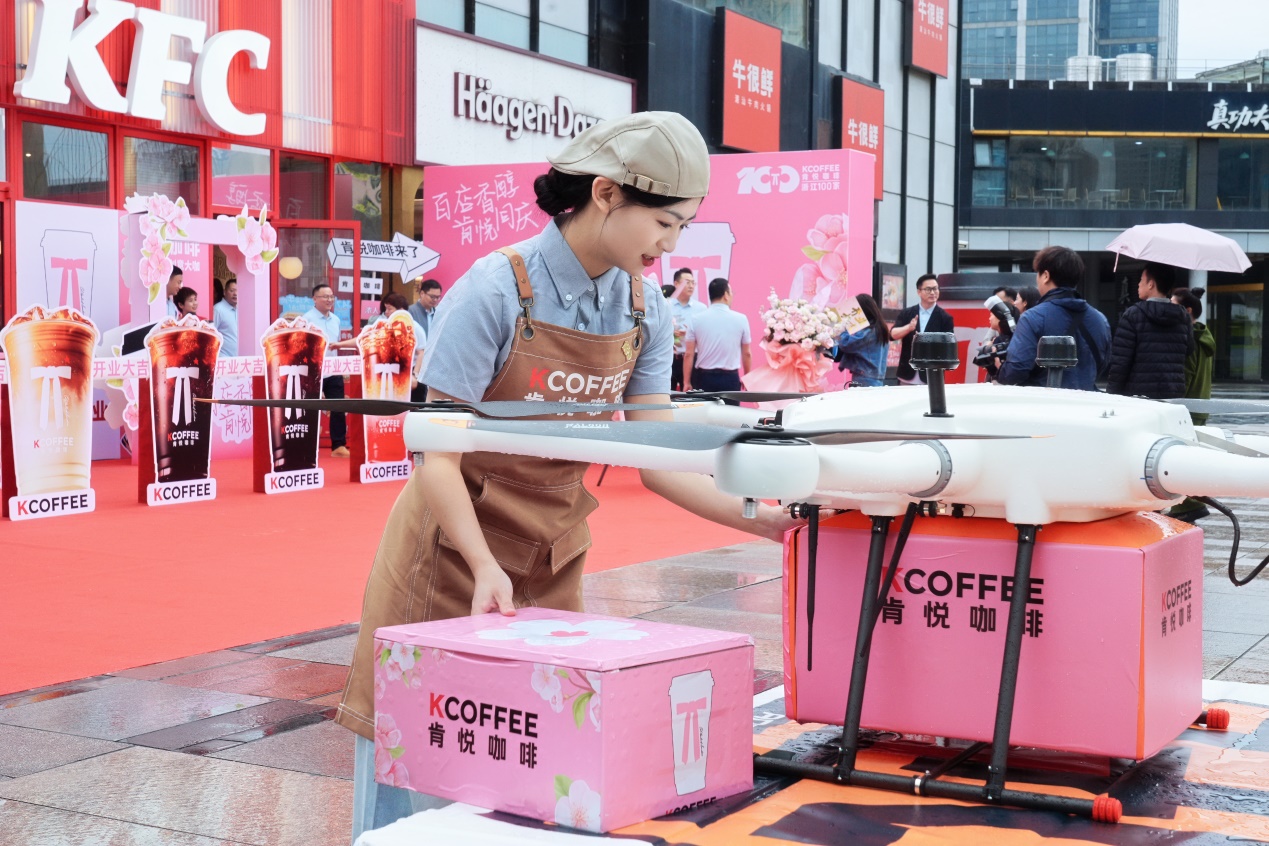 4月27日,浙江省第100家肯悦咖啡新水街店在宁波天一广场正式开业。与以往不同,这次肯悦咖啡百家门店庆贺活动以“无人配送”为亮点,通过无人机技术将现磨咖啡送至消费者手中,为宁波餐饮界带来一个新的尝试。