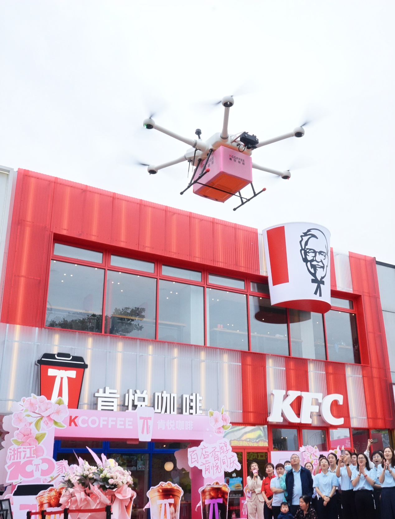 “好神奇,一下子飞得这么高,第一看见这么大的无人机送外卖。感觉像科幻小说中的场景,我觉得很震撼。”市民张女士惊讶地说到。迅蚁科技的无人机技术支持与宁波翼新科技的智能制造,共同为这一新模式提供保障,体现出咖啡零售业与低空经济深度融合的新趋势。无人机配送突破了地形限制,极大的提高了配送效率。肯德基在2019年的亚洲美食节活动现场就尝试过无人机送餐服务。
